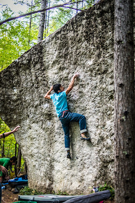 LRC - Sand stone with combination of slopers and crimpers. Needs variety of techniques but I thought the grading was softer. Most of the problems are faces but had overhangs and slabs as well. Area is linear but small and is next to golf course. Need to be respectful to golfers. $5/day